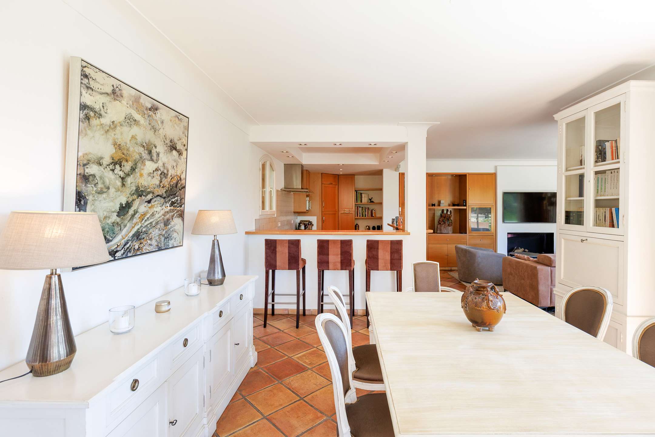 The spacious, light-filled living room opens onto the outdoor areas, extending convivial evenings around the dining table. The fully equipped open-plan kitchen allows you to prepare all your meals with ease.