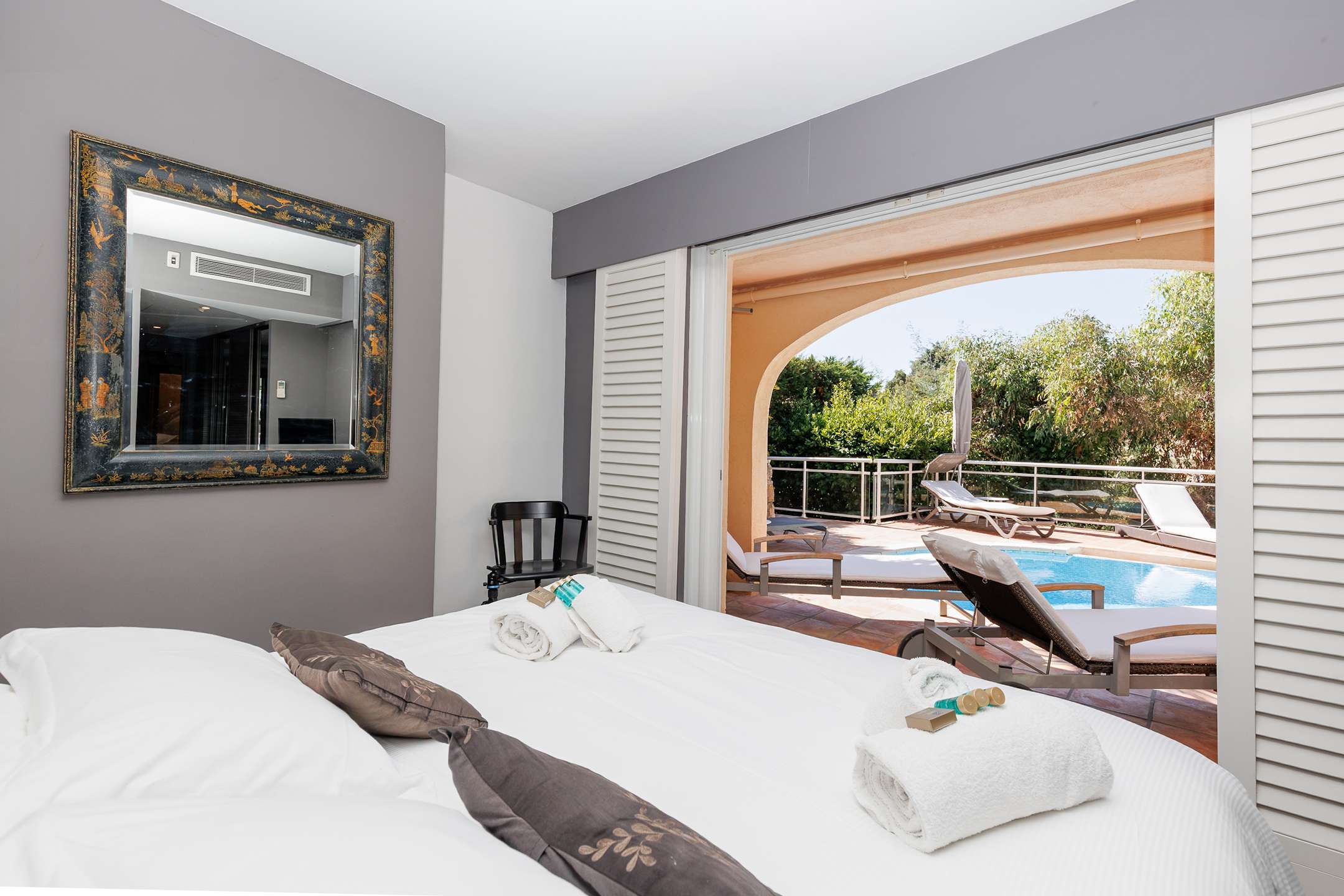 • Master suite: double bed, full bathroom (bathtub, shower, WC), direct access to the pool.
