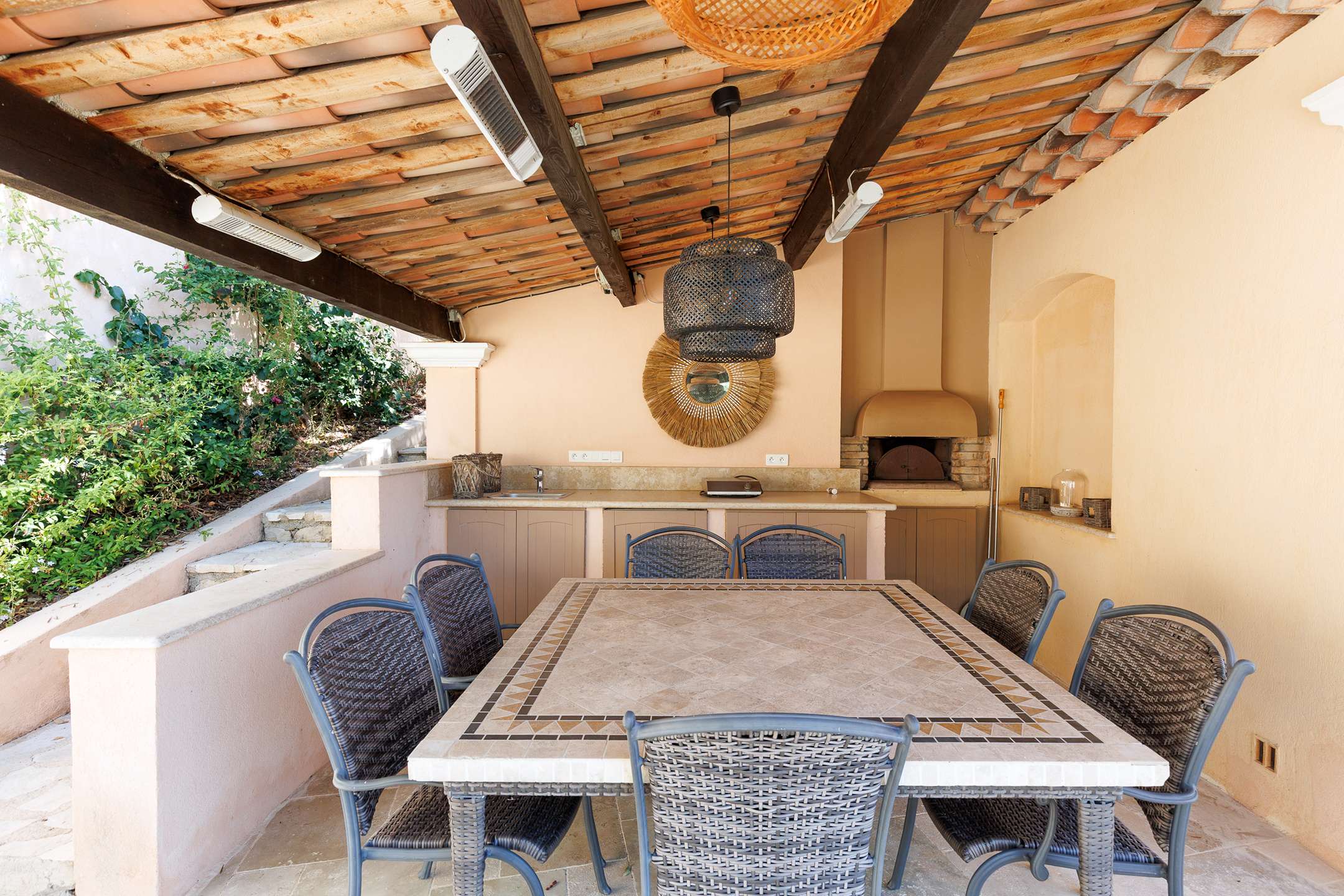Your holidays will be enjoyed mainly outdoors, around the terraces and the pool. You will benefit from a large covered terrace with a fully equipped summer kitchen (barbecue, pizza oven), perfect for summer lunches and dinners.