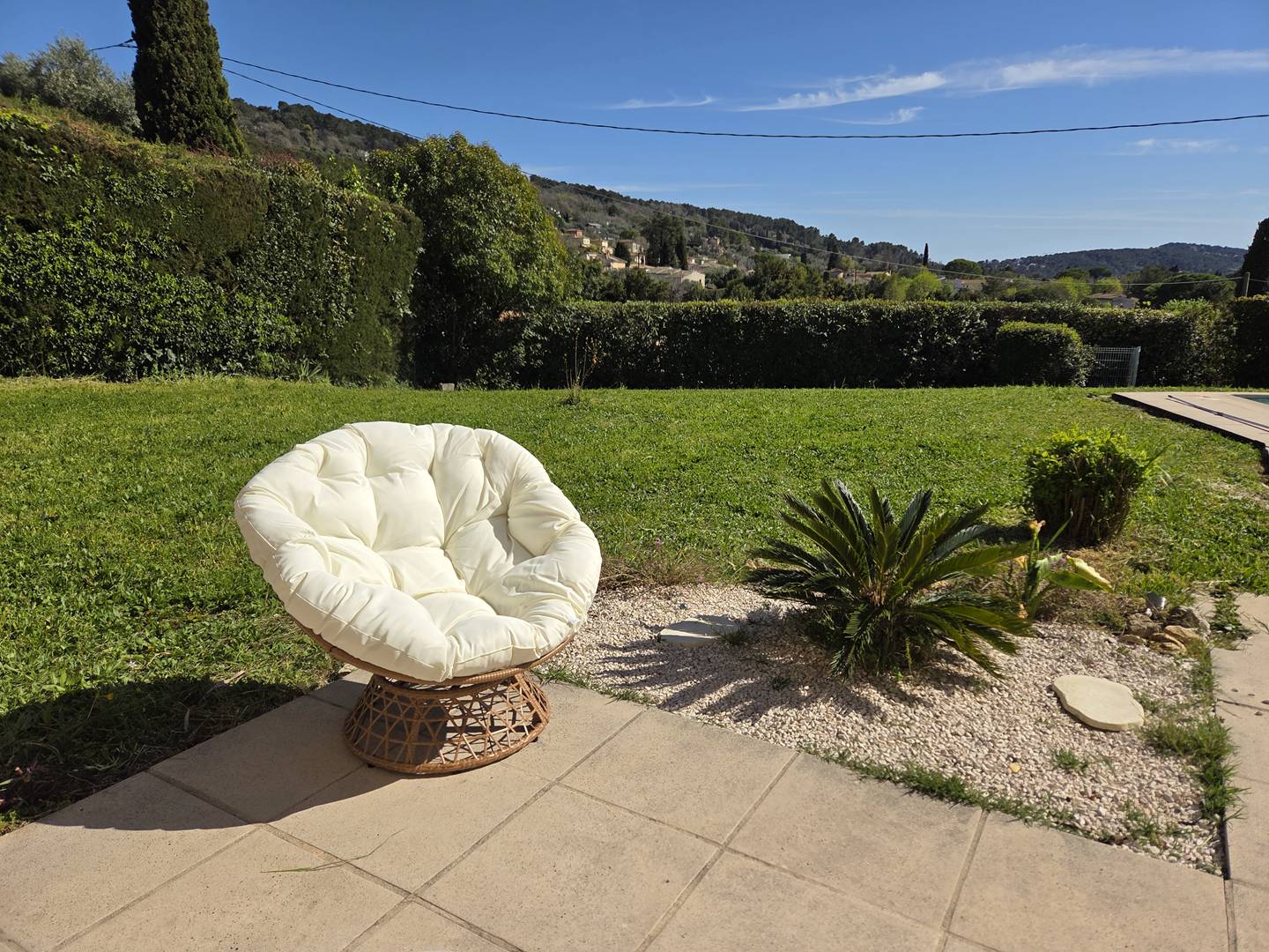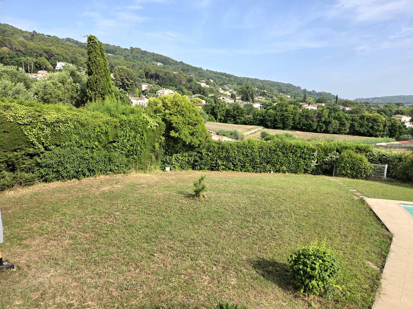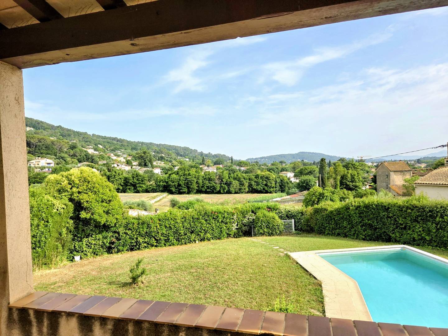 Beautiful 160 m² house in a quiet location with unobstructed views of the countryside, close to the historic centre of Mouans Sartoux: 5 minutes by car and 15 minutes on foot (1 km).