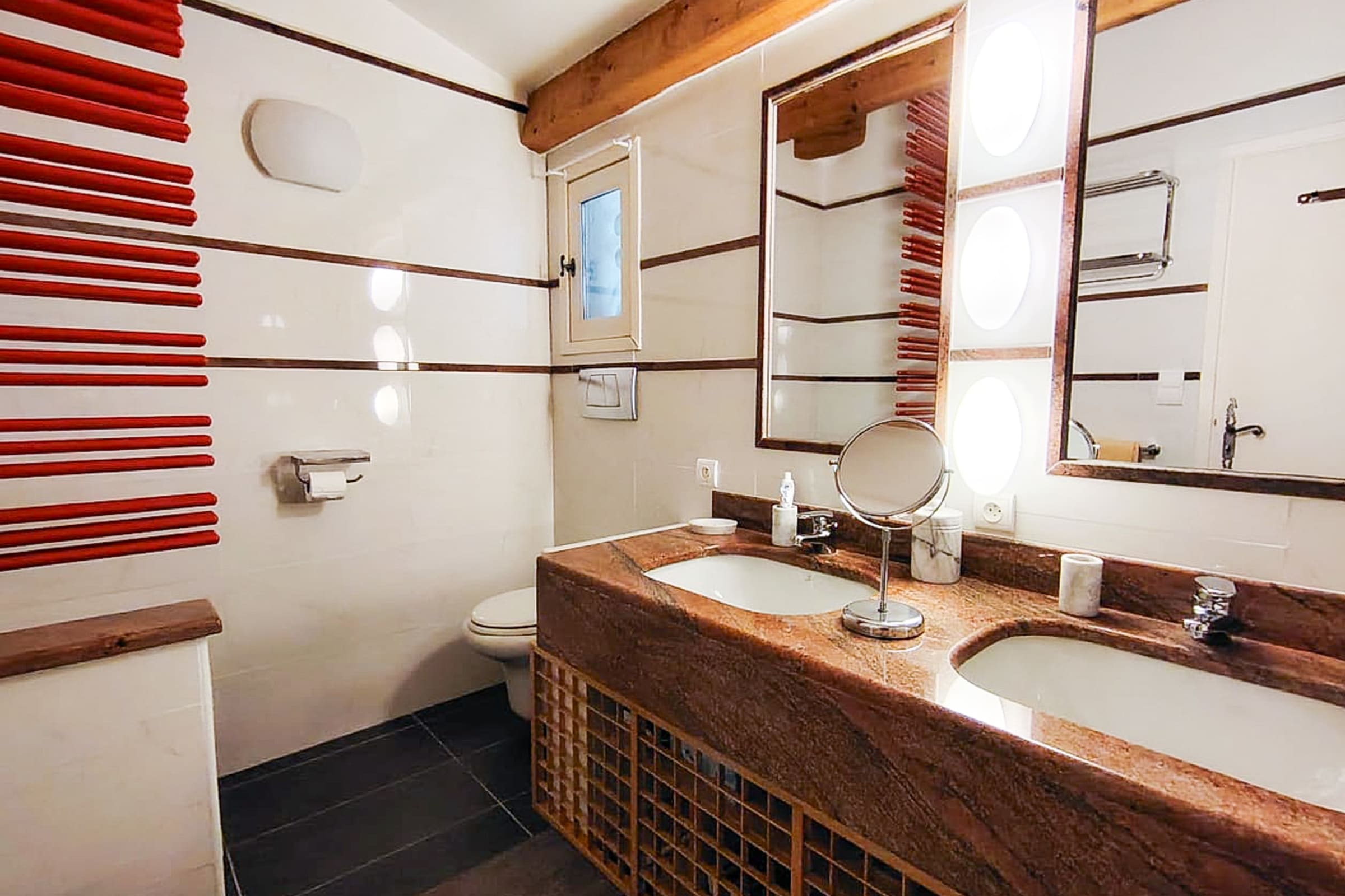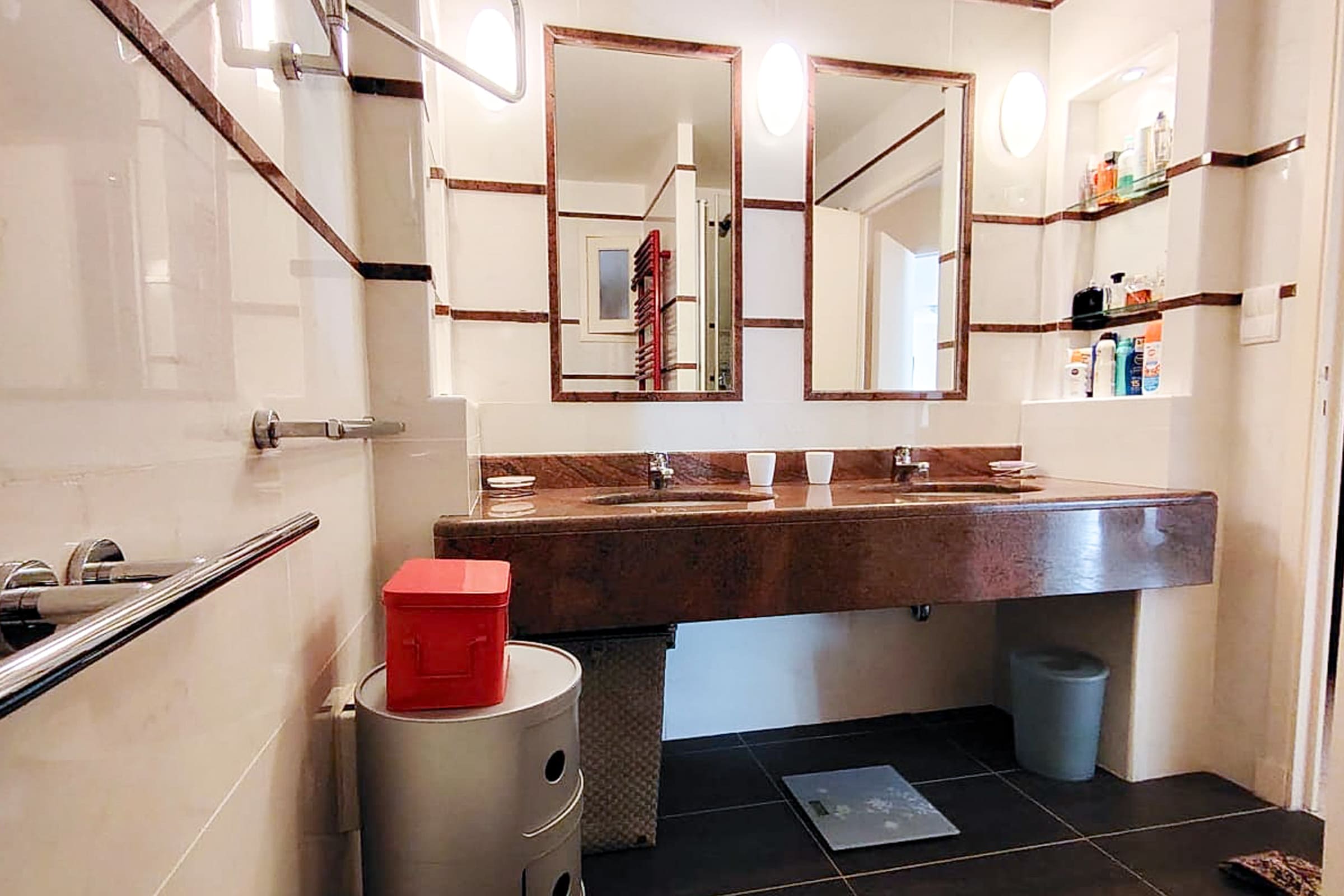 • BATHROOM 1: Large vanity, bidet, shower, and toilet.