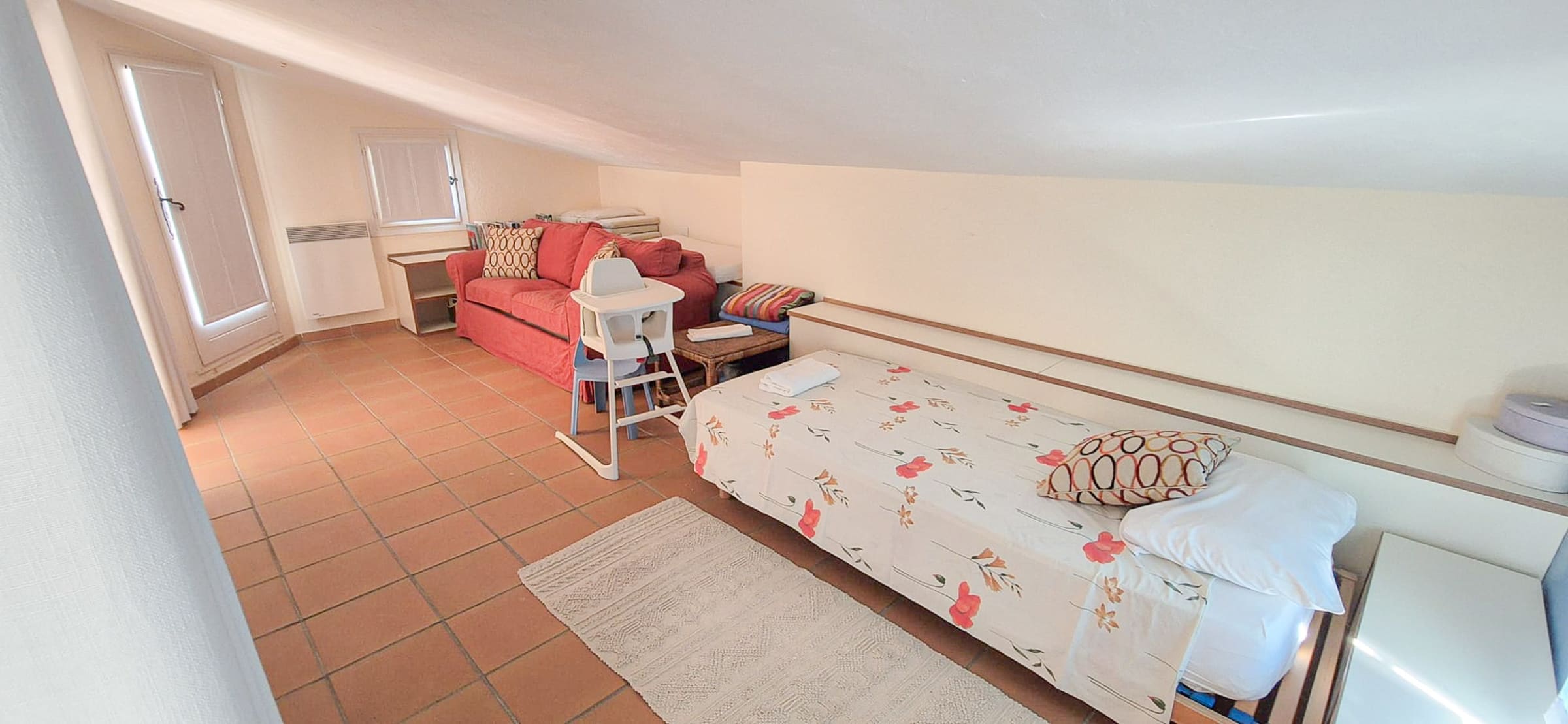 • BEDROOM 3: Attic bedroom with a single bed (90x180) and a sofa bed that converts into a bed (140x200)